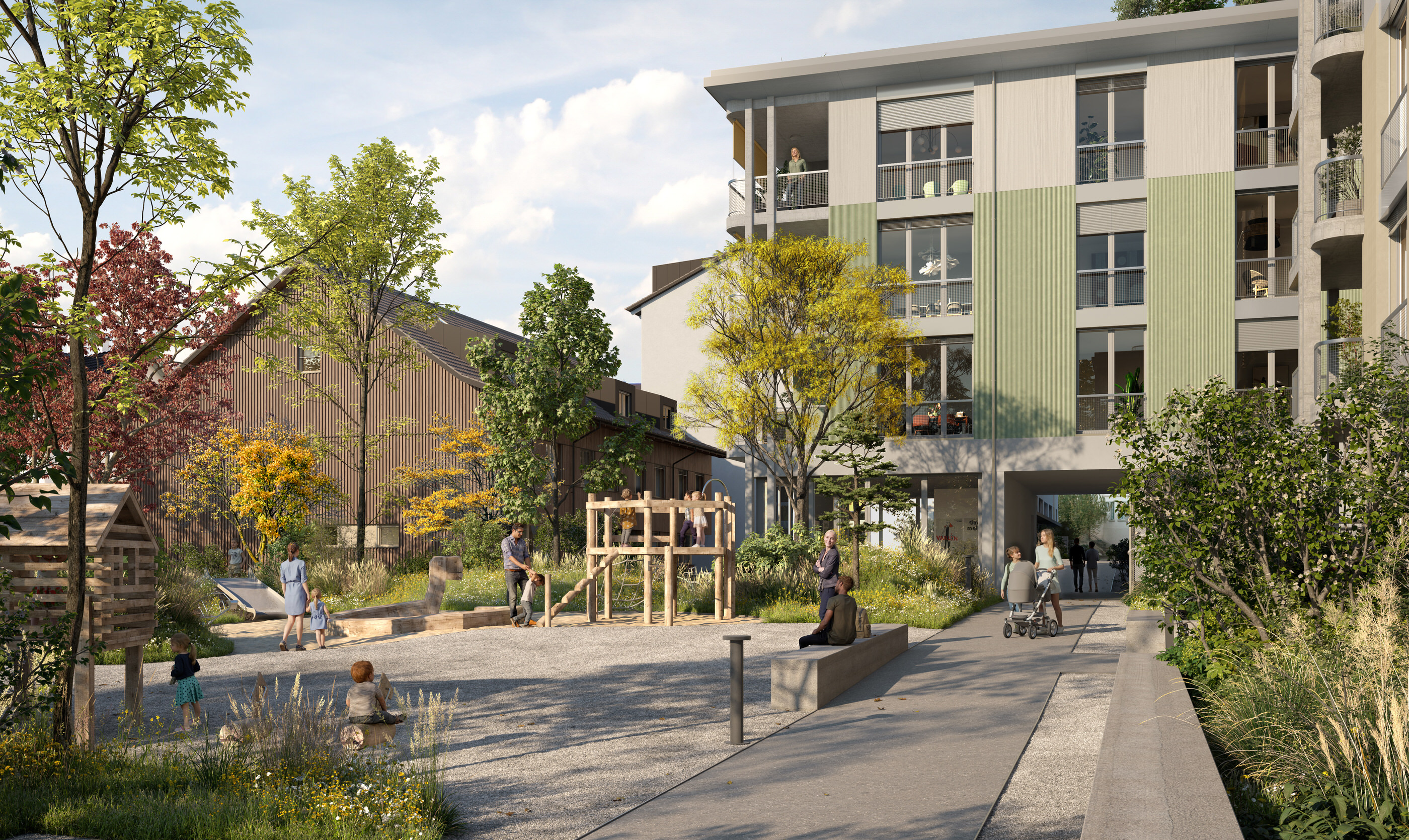 Loftwohnungen, Reiheneinfamilienhäuser? Allein das ist schon ein spannender Mix! Und wenn dann noch moderne Miet- und Eigentumswohnungen, ein Gemeinschaftsraum, ein grosszügiger Hof und attraktive Aussenplätze sowie zwei Gewerberäume hinzukommen – dann ist eine lebendige Vielfalt für Singles, Paare und Familien garantiert. Sie sehen: auf dem Flawa-Areal entsteht keine gesichtslose Siedlung, sondern ein vitales Quartier für alle, bei dem Lebendigkeit zu einer neuen Lebensqualität führt. Für eine gelebte, gute Nachbarschaft – jeden Tag aufs Neue.
