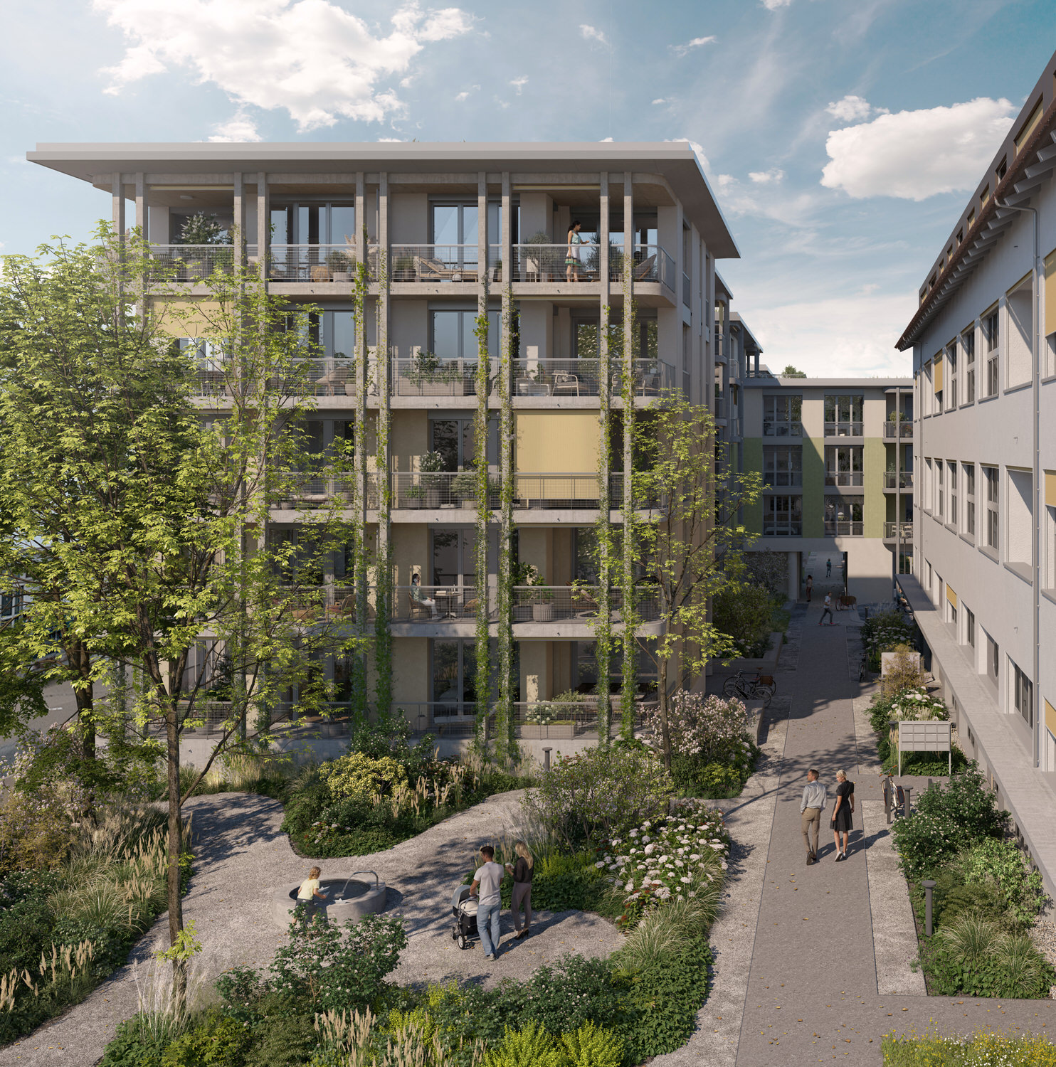 Das HAUS GRÜNE MITTE bietet auf fünf Etagen 14 Eigentumswohnungen mit 2.5, 3.5, 4.5 und 5.5 Zimmern.