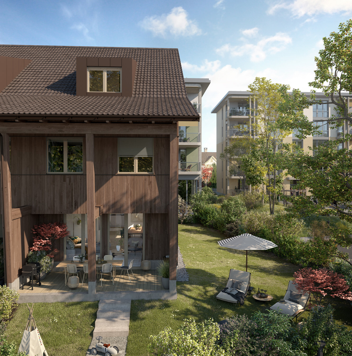 Dieses Angebot steht für modernes Wohnen, das sich an individuellen Bedürfnissen orientiert und eine harmonische Balance zwischen Gemeinschaft und Privatsphäre bietet – stilvoll, praktisch und äusserst lebenswert. Zu den Häusern